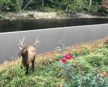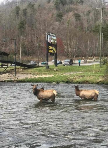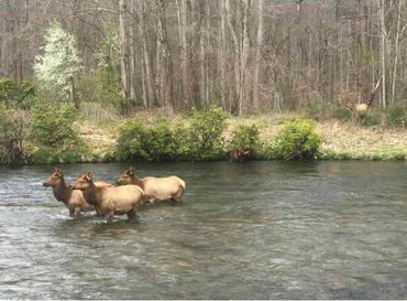 The Elk live next door! The main hiking trail to the Visitor's Center or to the GSMNP is across the river from us.